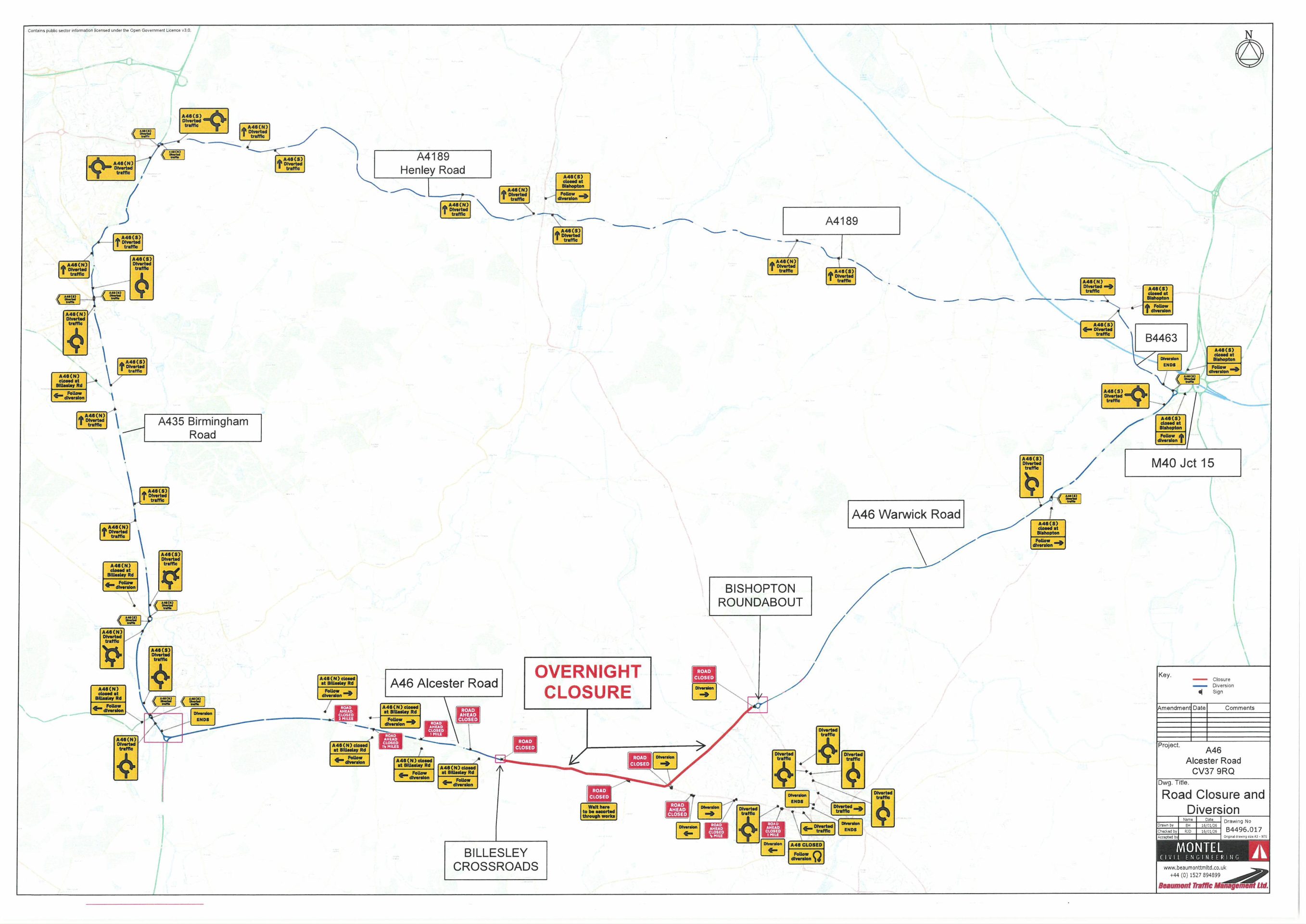 • Thursday 26th & Friday 27th February – Local traffic exiting from the section of road that will be closed will be directed westbound only. Vehicles will be permitted through the closure to join the A46 westbound towards Billesley Crossroads.